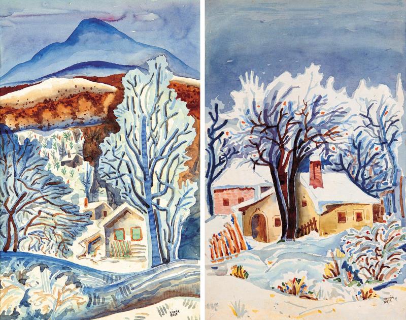 Téli falurészlet, Hátoldalon: Téli falurészlet